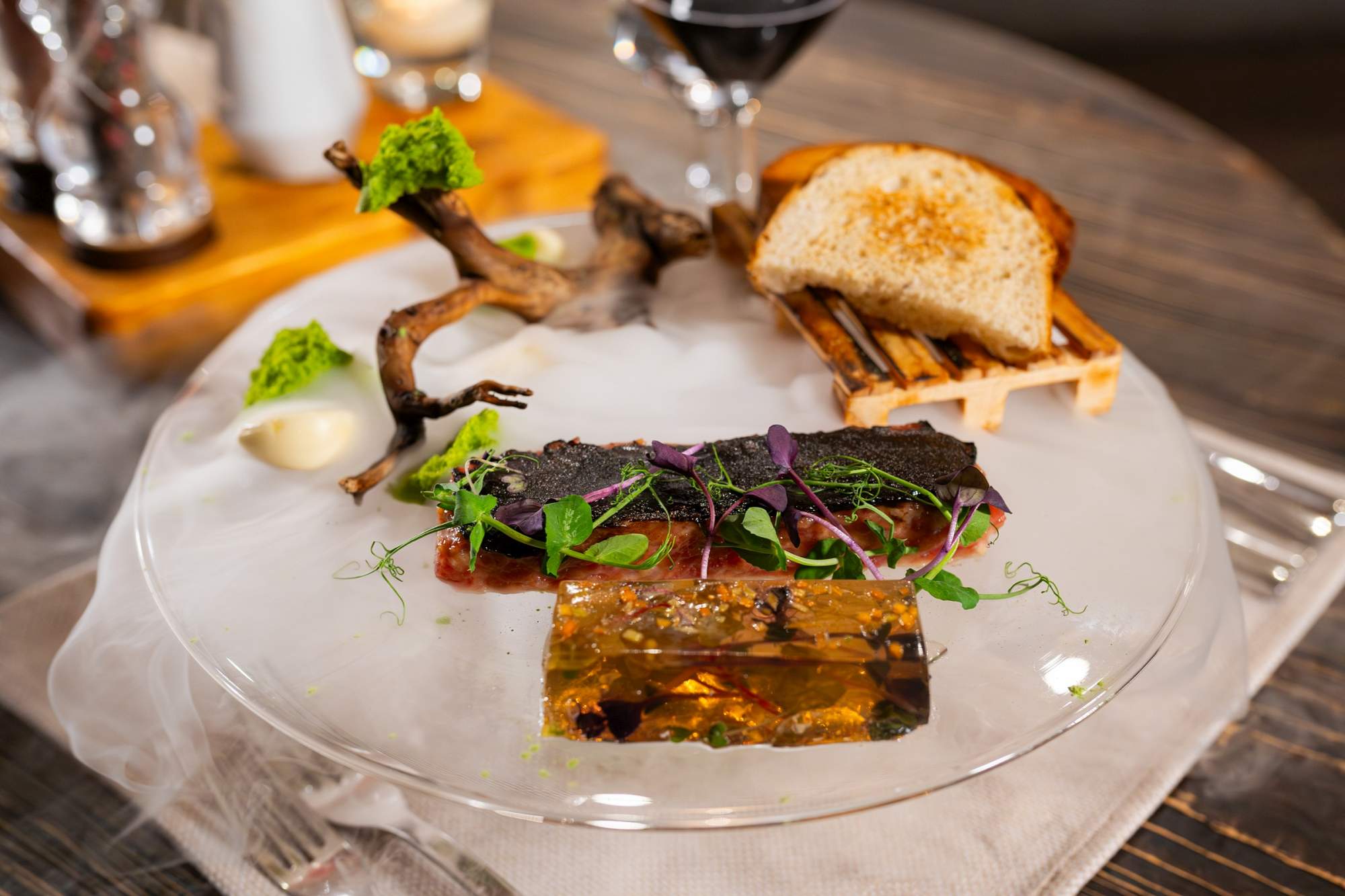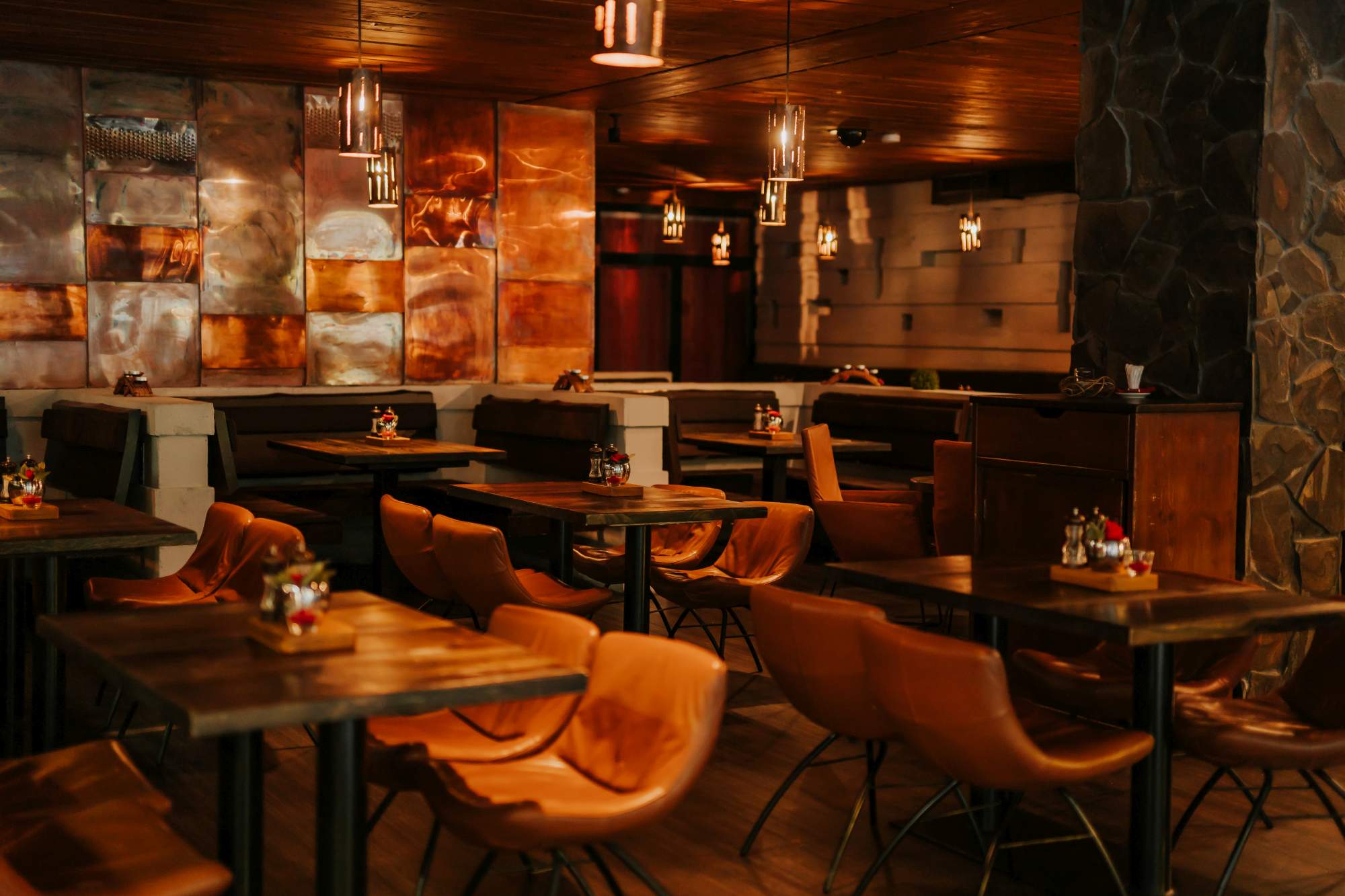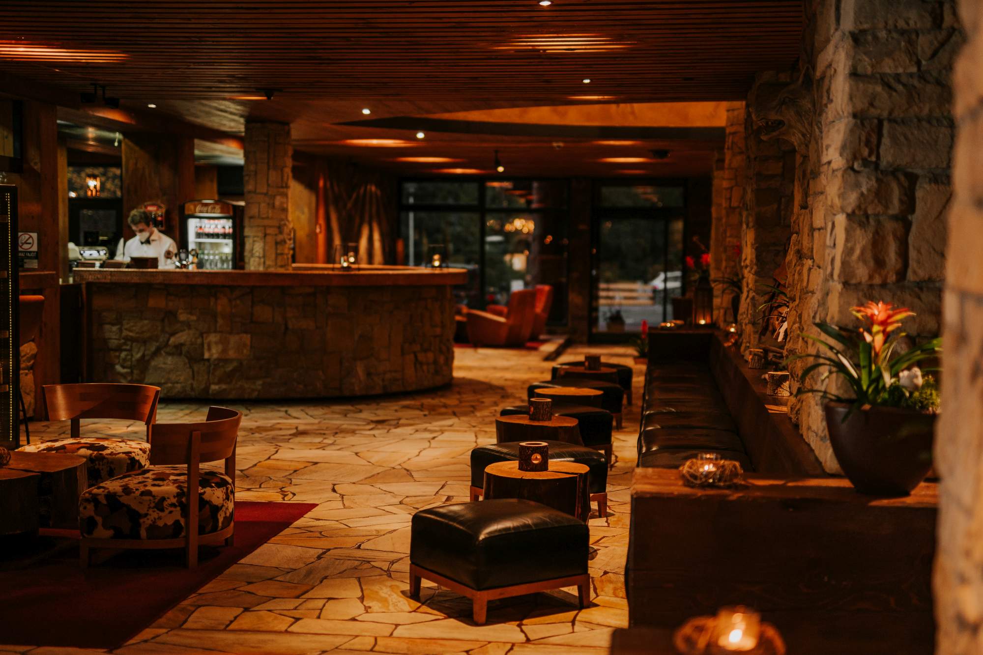 lobby bar s krbem a domácím kinem. Lákající je i posezení na terase