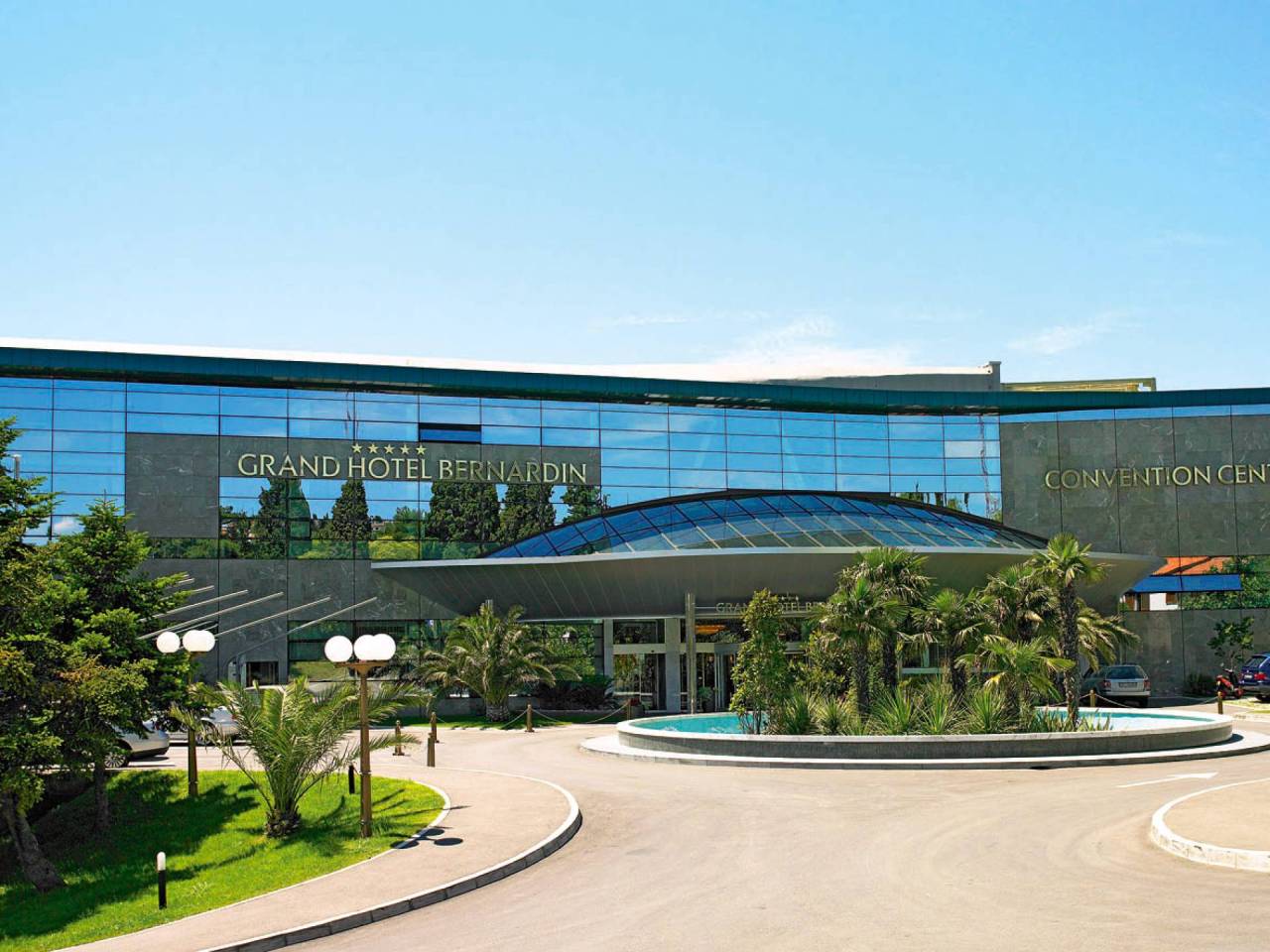Všechny pokoje i apartmány tohoto hotelu mají výhled na jezero. Hotel je plně klimatizován a nabízí vyhřívaný krytý bazén ve vodním parku Laguna Bernardin, wellness centrum Paradise Spa, kadeřnictví, soukromou pláž, Tropic bar, Grand restaurant, a-la carte restauraci Pecina a Sunset, Grand Cafe i Koktejl a Piano bar, 24-hodinový pokojový servis a hlídané parkoviště.