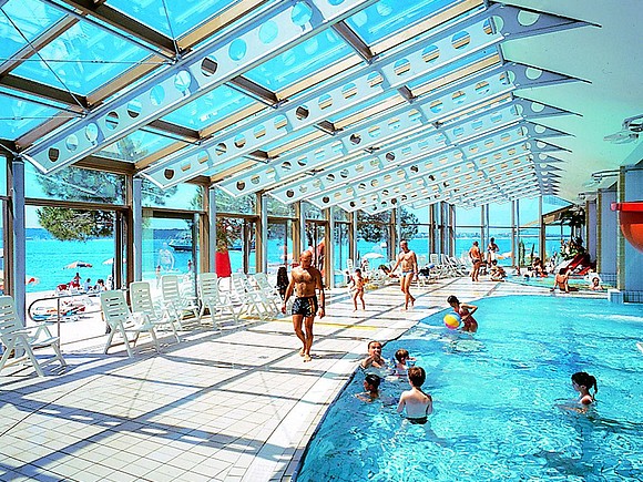 vnitřní i venkovní bazény, vodní atrakce pro děti i klidové zóny pro
