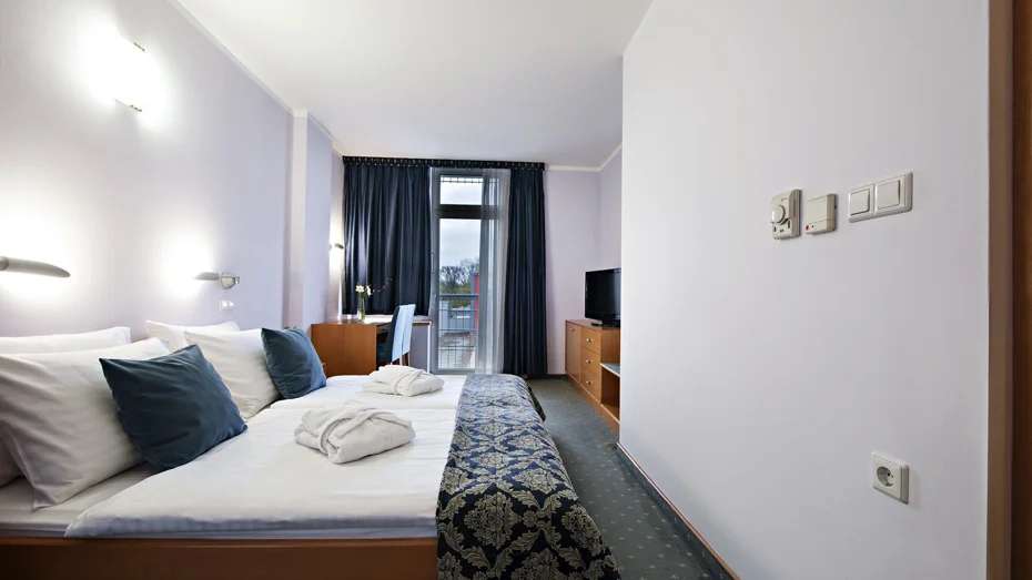 Ubytování ve dvoulůžkových pokojích economy s vlastním sociálním zařízením (sprcha/vana, WC, fén), telefonem, satelitní televizí, rádiem a trezorem. Dvoulůžkové pokoje standard mají možnost přistýlky.